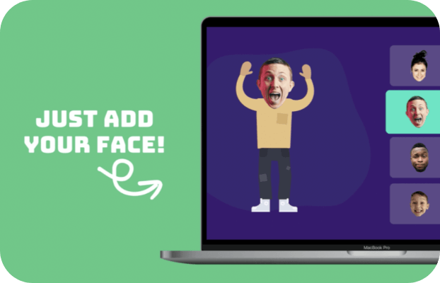 You’re getting our brand new Bobble heads character creator which allows you to create your own characters with your own faces! Add literally any face and make unique funny characters in minutes!