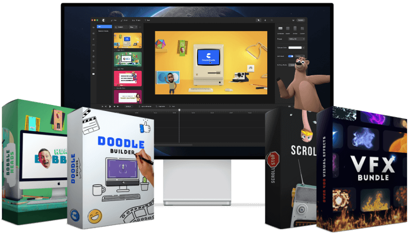 You’re going to get our entire doodle builder bundle pack with loads of doodle characters, a stickman, paper transitions, doodle effects & icons!